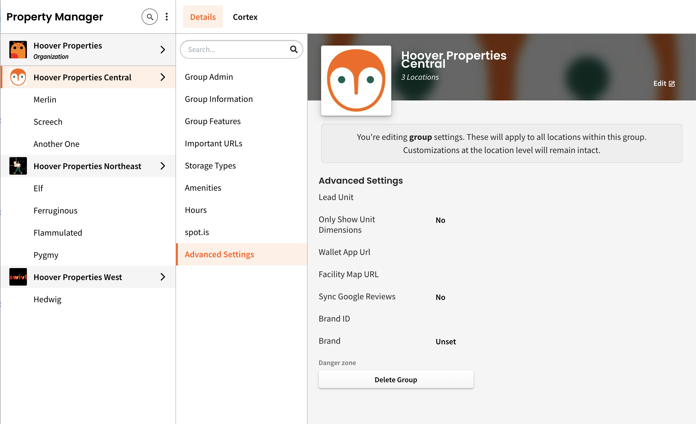 - Brand–this is used to organize locations across multiple groups into a single brand.