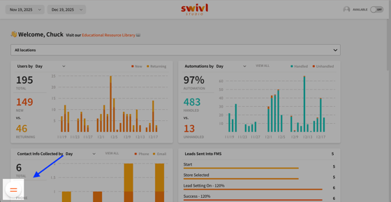 Or navigate to the main menu at the bottom left of your screen and choose Conversations.