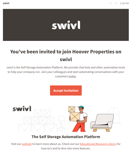 When your manager adds you to swivl, you’ll receive an email from invite@tryswivl.com with a personalized link to set up your account.