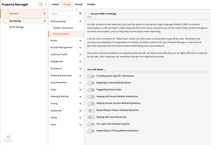 ✏️ Once a category is turned on, you can fine tune your selection by turning on/off the Enhance with AI feature on Cortex sub pages.