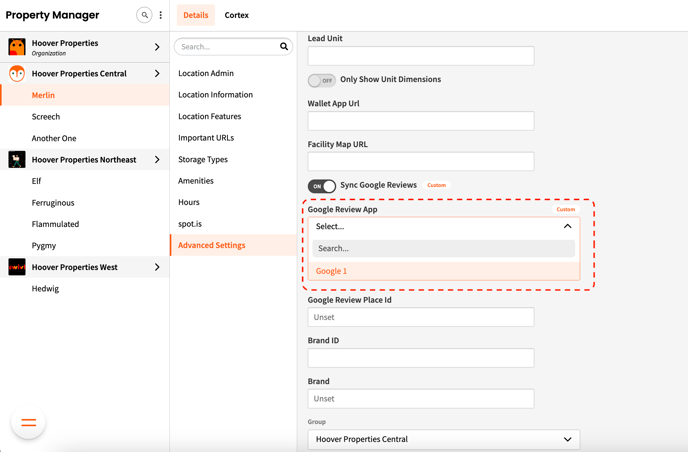 7. Within Property Manager, select each facility’s Google Account and Location Name