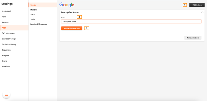- Assign a Name to this instance. Choose a name that will help you easily recognize this Google Account in the future.