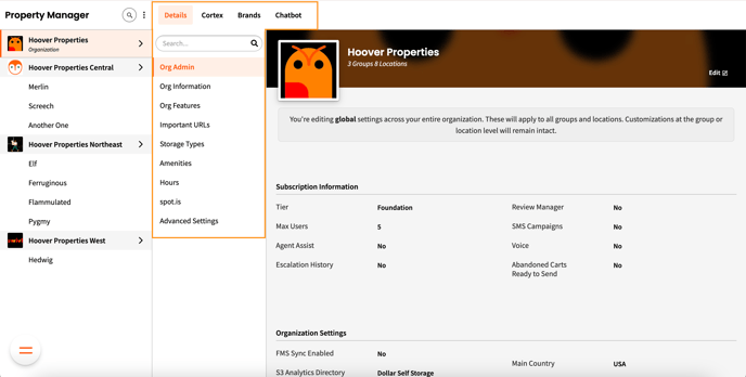 The Organization level is the highest tier. It includes global settings that apply across your entire account and locations. This is where you manage your default settings and ensure consistency across all properties.