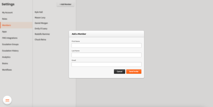 Enter the user's first name, last name email address, and click "Send Invite" to send them an email with a unique link to set up their account.