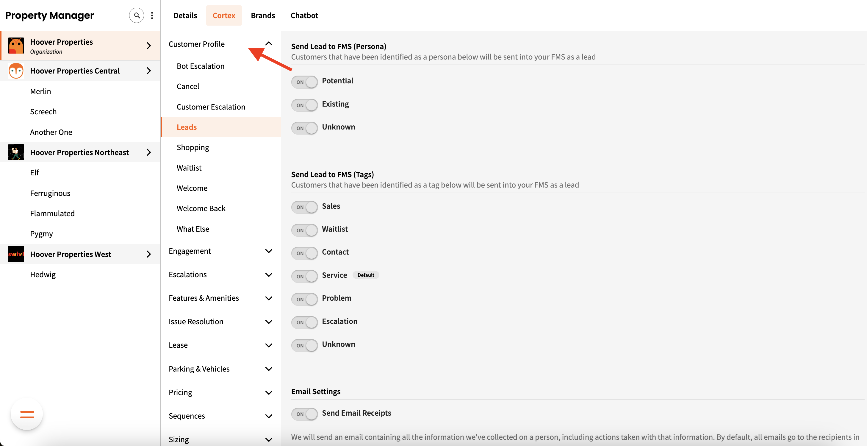 If any of these are turned on, they will also be sent to the FMS. All of these toggles are an OR function, so if Potential and Problem are turned on, either one of those cases will send (in this case you might get an existing customer as a lead). You may want to keep problems and escalations out of the FMS. If so, you would keep Problem turned off.