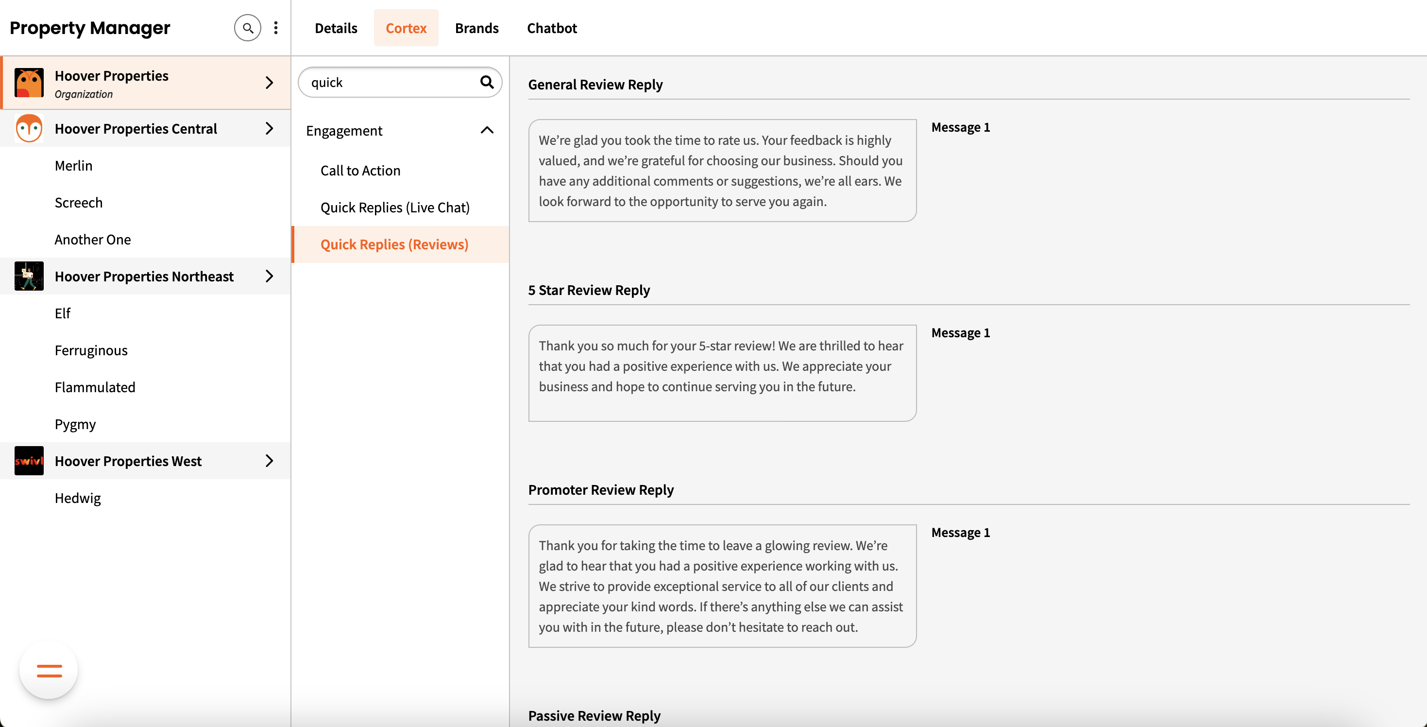When it's time to reply to a review, simply open the quick reply drawer and pick the template that suits your needs. The message will instantly appear in the text box, leaving you with just one click to publish your reply!