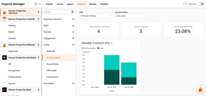 When you see a Location Name, click it. Select "View in Property Manager" to jump to that location's Details page - where you can adjust chatbot content, settings, and more.