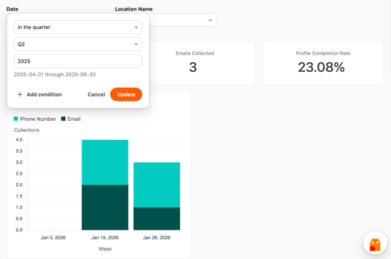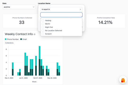 The feature may not be enabled for your locations, or there's no activity in your selected date range. Try expanding the date filter.