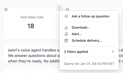 - Answer questions about any chart on your current dashboard