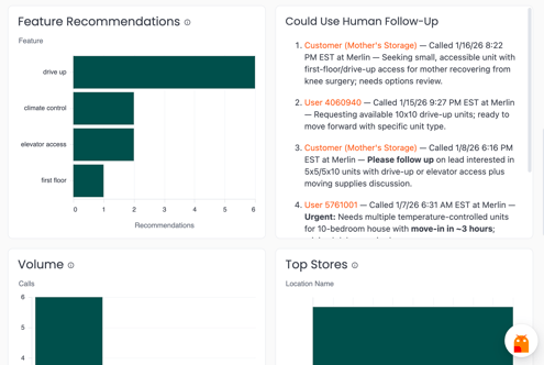 2. Find the "Could Use Human Follow-Up" tile - it shows callers, when they called, and what they needed, with clickable links to the conversation