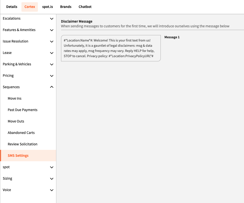 📢 This page is for definition and documentation purposes only. In order to update your account, you’ll need to navigate to Property Manager > Cortex > SMS Settings